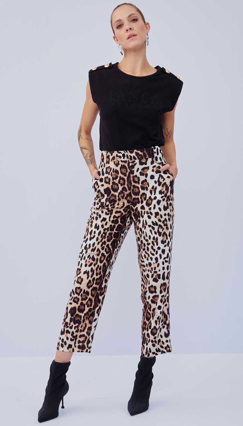 A calça Lança Perfume possui barra mais curta, cintura super alta, bolsos e tecido estampado. Aposte!