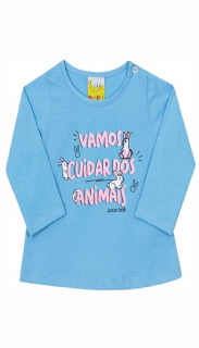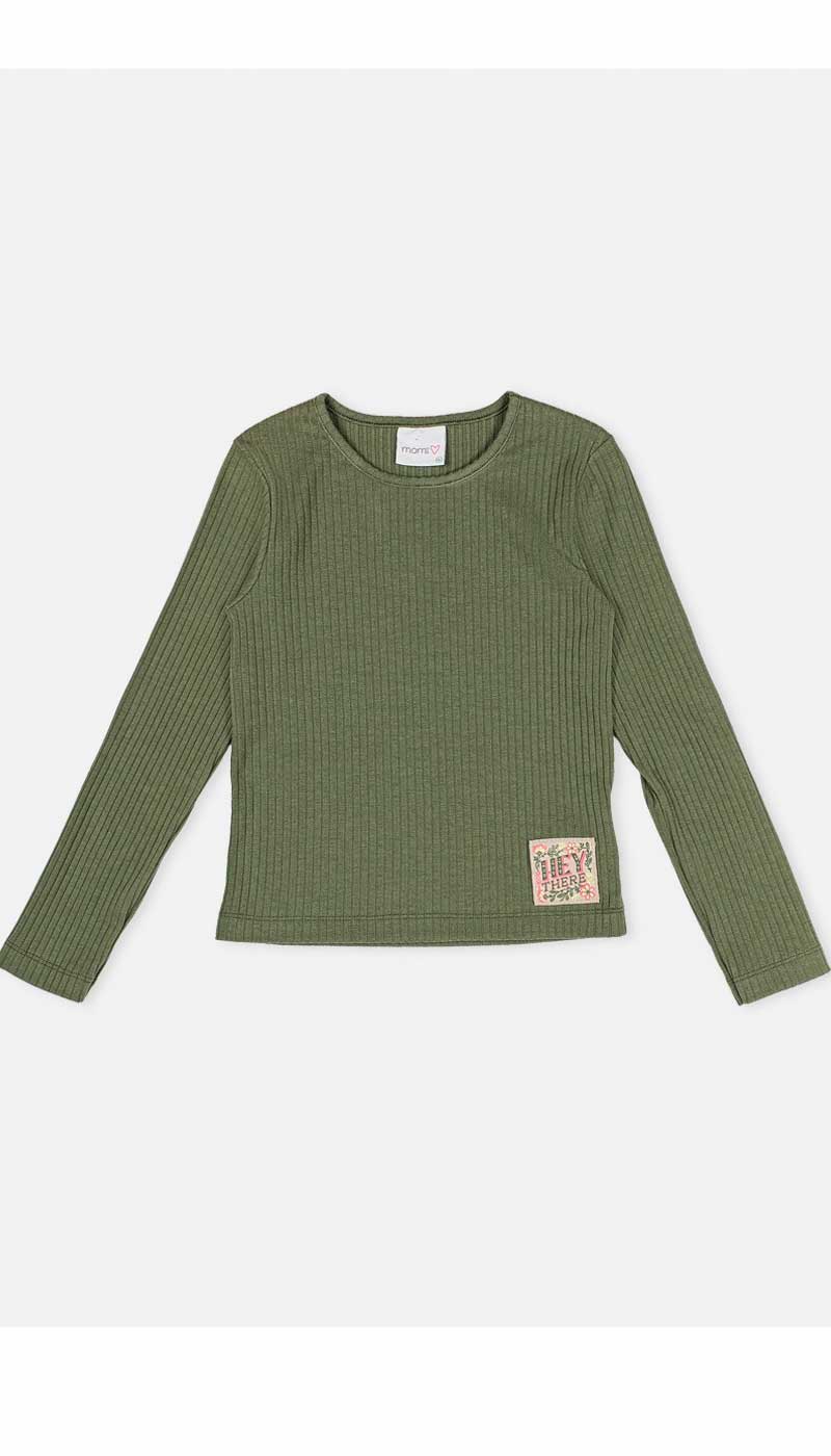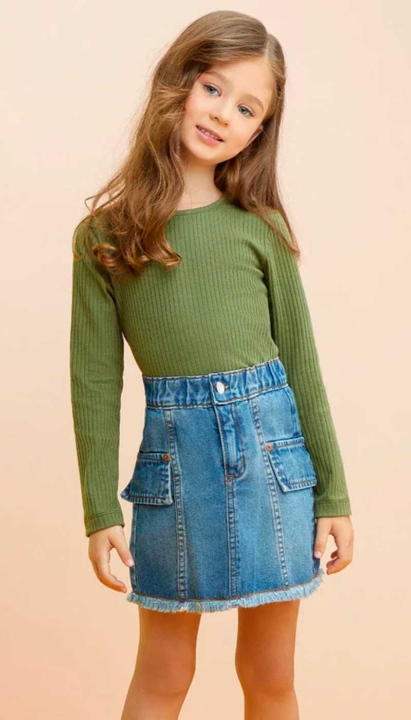 A blusa básica infantil feminina Momi possui manga longa, gola redonda e malha canelada. Aposte!