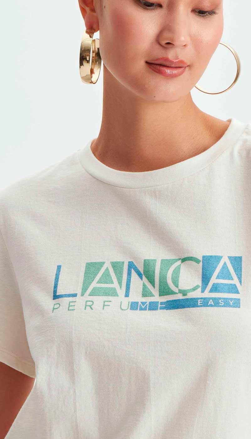 A camiseta Lança Perfume foi confeccionada em malha de algodão, possui modelagem solta, manga curta, gola redonda e estampa silk frontal. Aposte!
