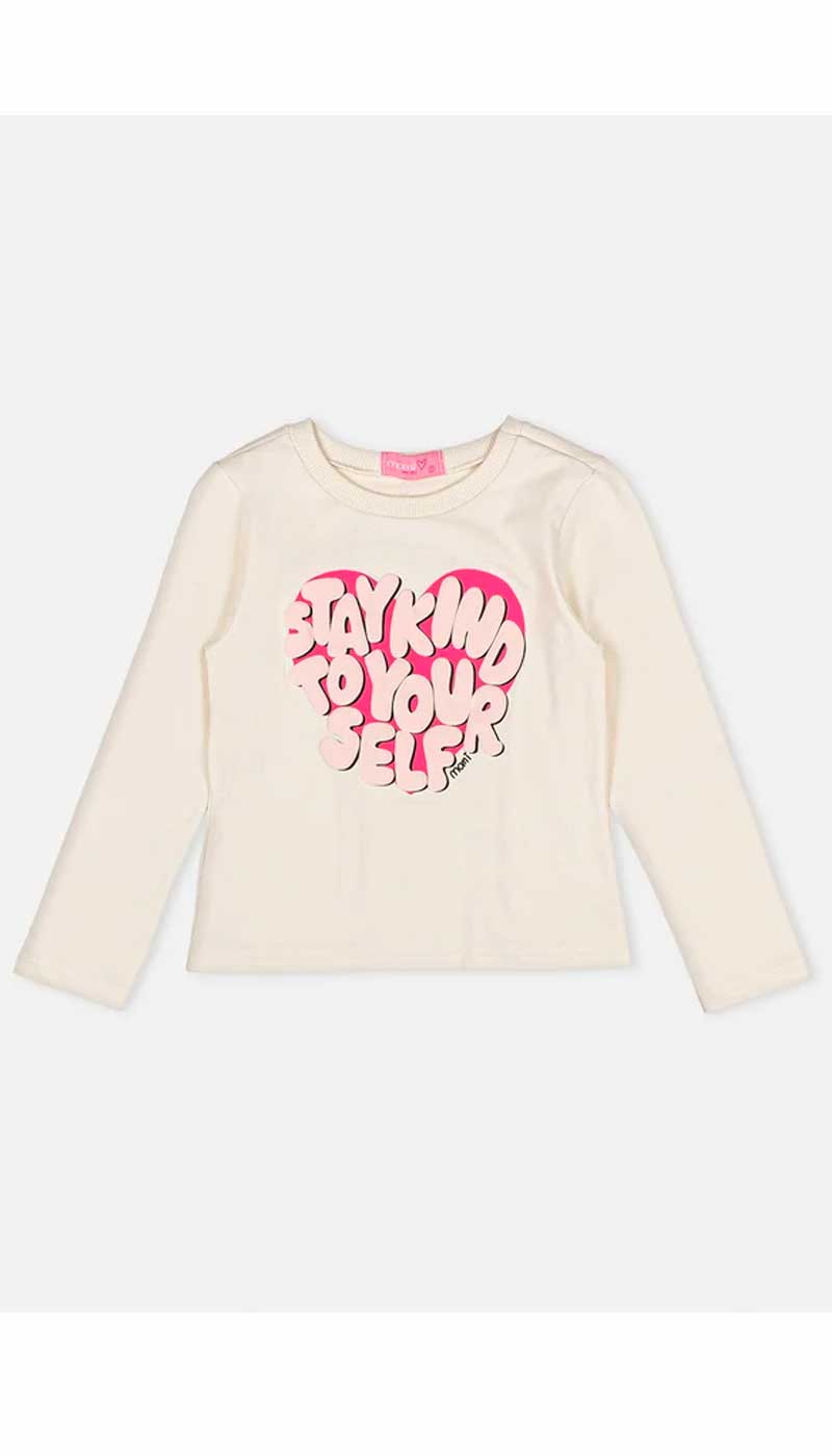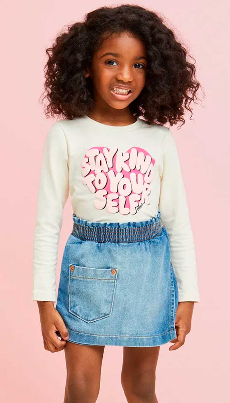 A blusa infantil Momi possui manga longa, gola redonda, modelagem justinha e estampa silk frontal. Aposte!