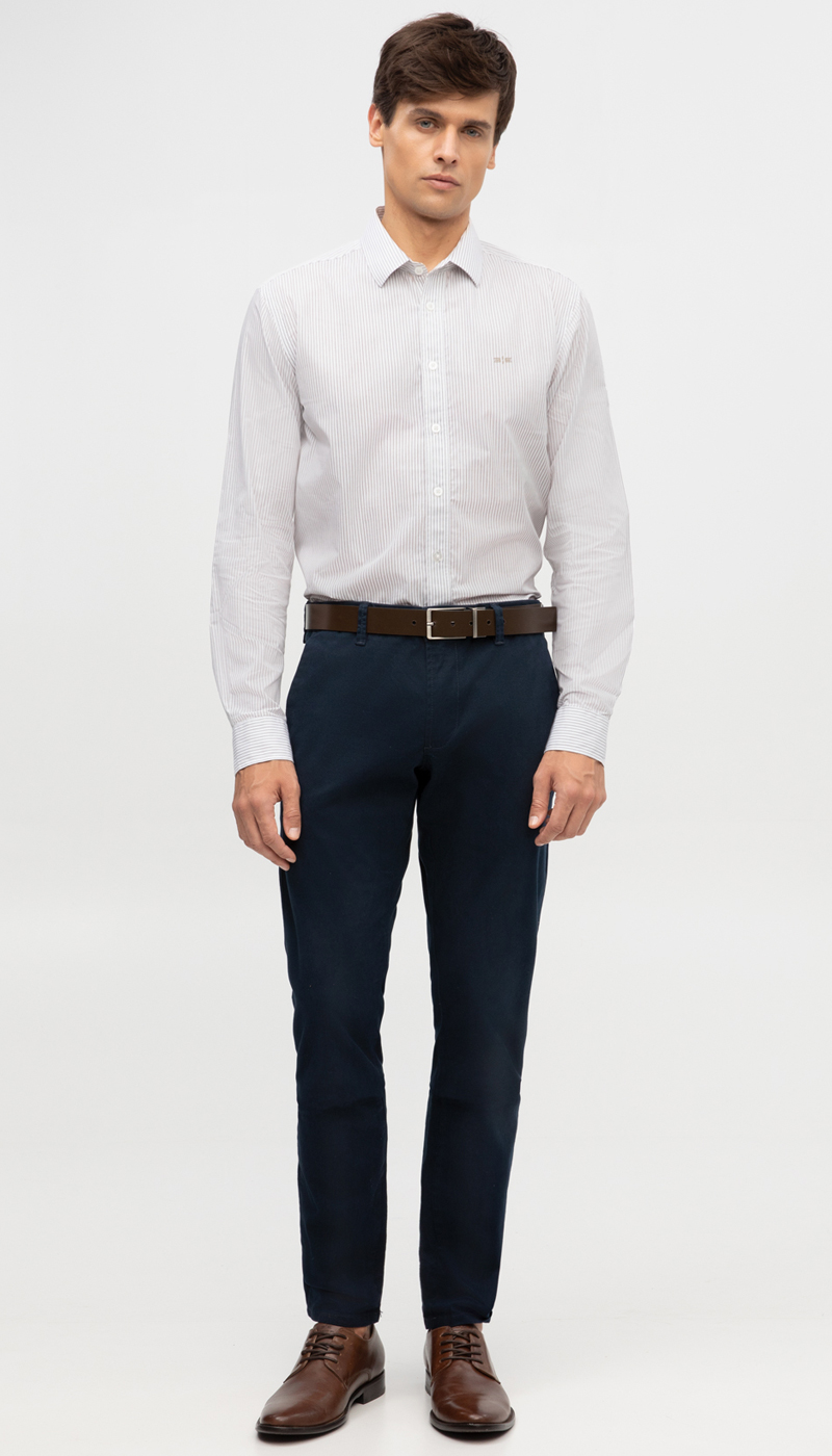 Confeccionada em Tecido Tricoline 50/1: tecido plano de algodão nobre e estruturado, com fio 50/1, modelagem Slim Fit mais ajustada ao corpo, com gola clássica e abertura frente pespontada deixando a peça com visual mais encorpado, gola entretelada para ser mais estruturada, fechamento frontal por botões, mangas longas com punho e fechamento por botões. Aposte!